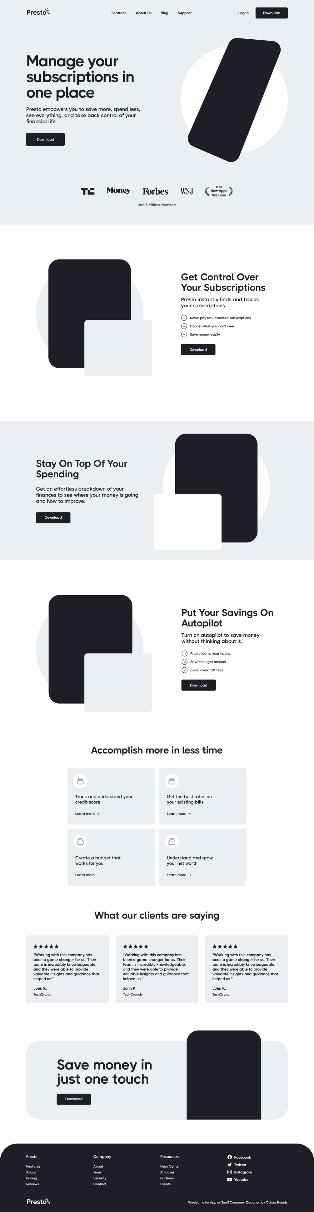 Design your website with this modern and clean looking wireframe. Use this PDF to guide you through your design process and create a wonderful homepage for your website to promote your app.